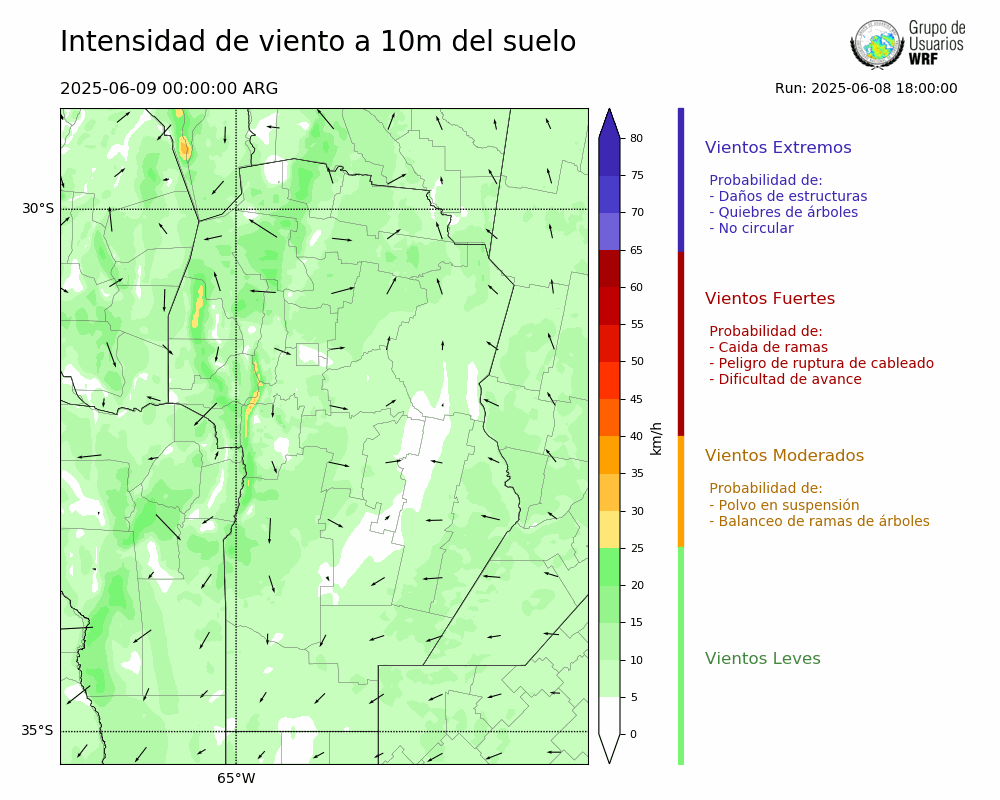• Intensidad máxima: 11.47 km/h (09/06/2025 11hs.)