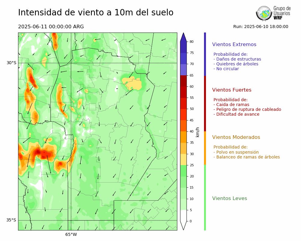 • Intensidad máxima: 10.19 km/h (12/06/2025 02hs.)