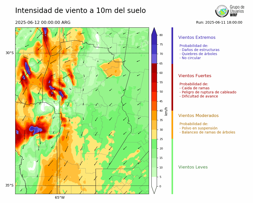 • Intensidad máxima: 11.49 km/h (12/06/2025 02hs.)