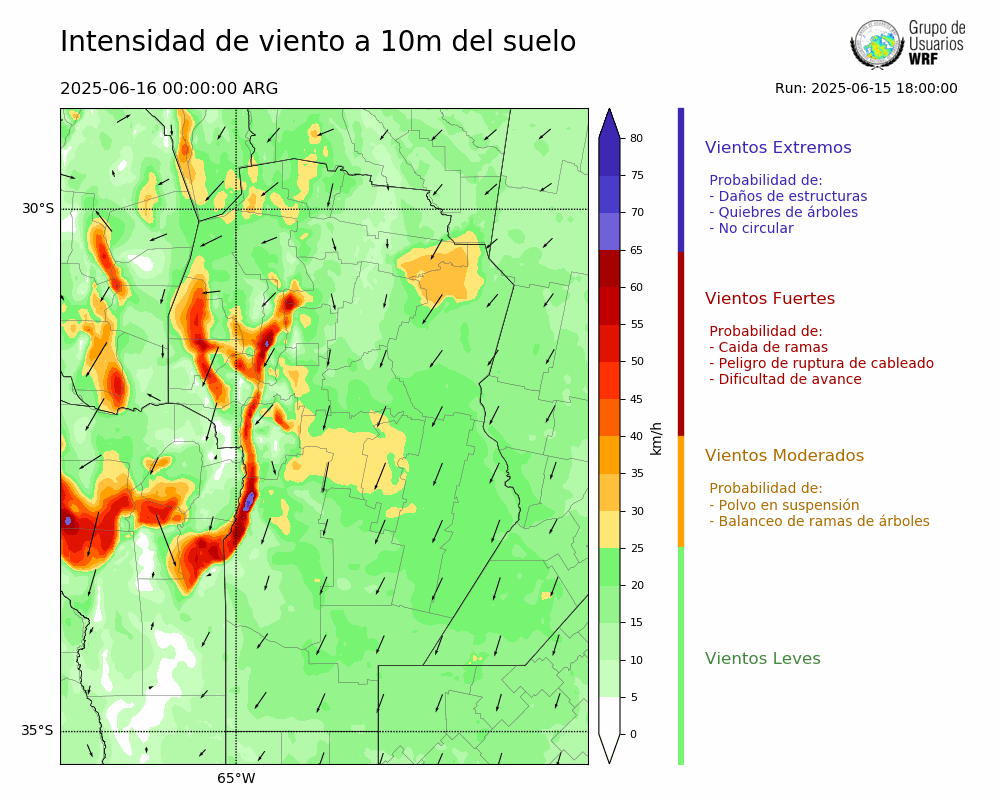 • Intensidad máxima: 8.48 km/h (16/06/2025 05hs.)