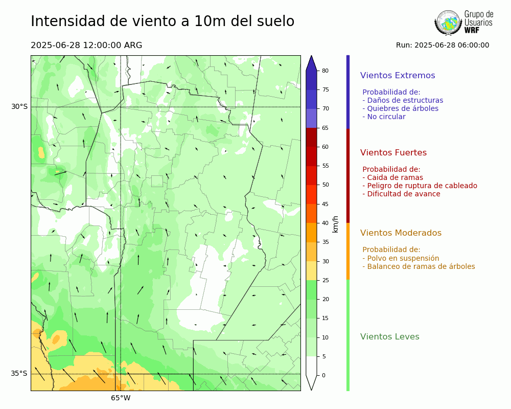 • Intensidad máxima: 8.32 km/h (28/06/2025 13hs.)