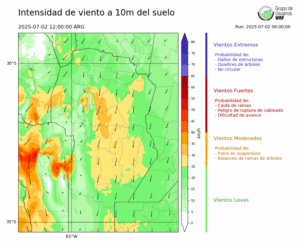 • Intensidad máxima: 14.43 km/h (03/07/2025 02hs.)