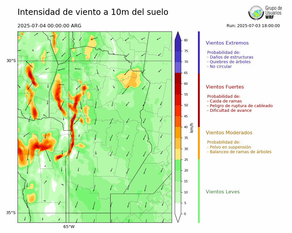 • Intensidad máxima: 15.58 km/h (04/07/2025 00hs.)