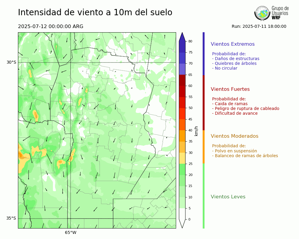 • Intensidad máxima: 8.47 km/h (12/07/2025 02hs.)