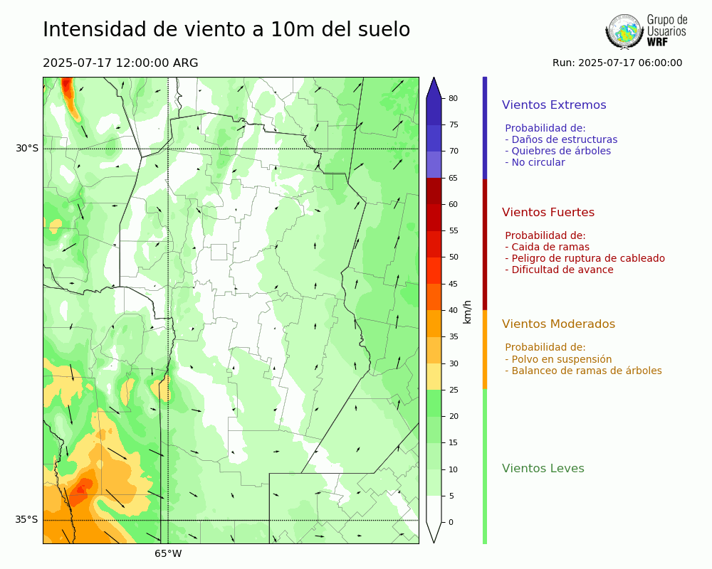 • Intensidad máxima: 10.76 km/h (17/07/2025 18hs.)