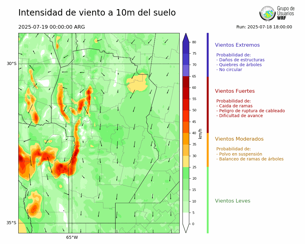 • Intensidad máxima: 4.82 km/h (19/07/2025 05hs.)