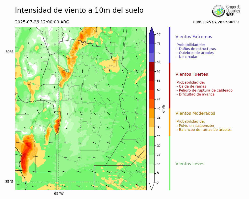 • Intensidad máxima: 14.85 km/h (26/07/2025 13hs.)
