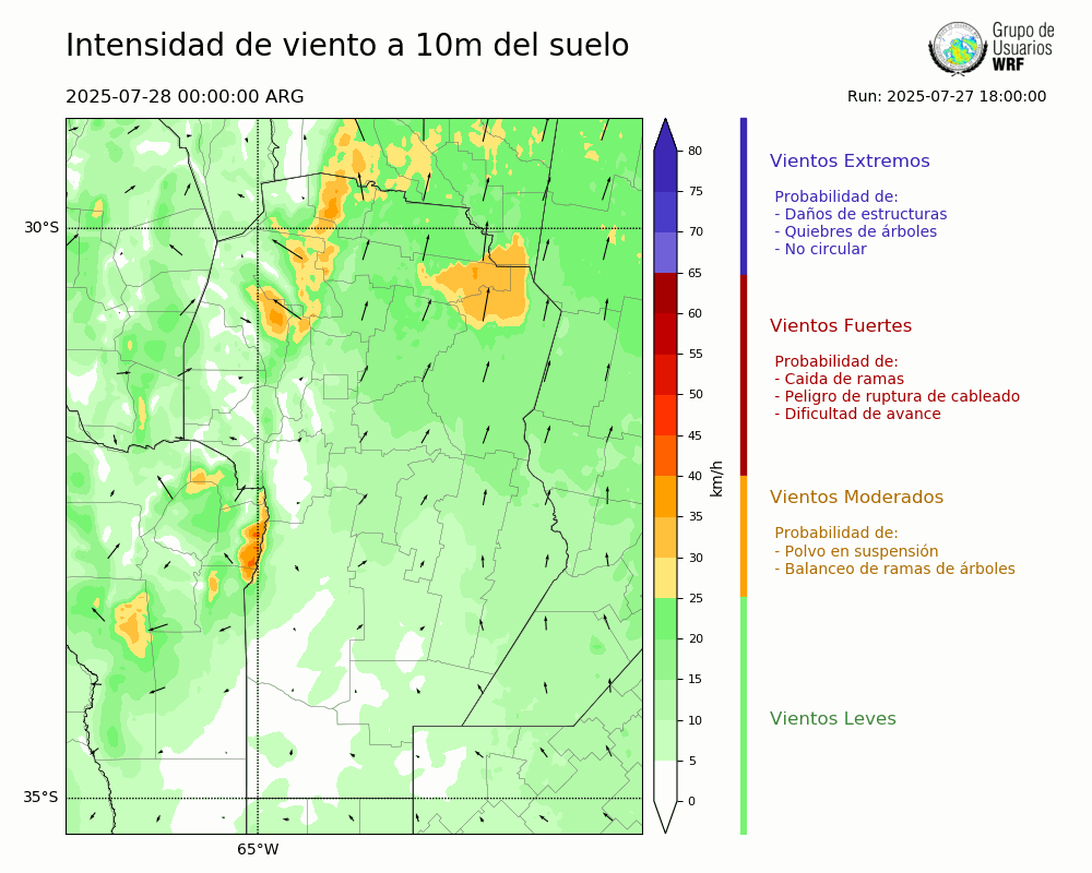 • Intensidad máxima: 9.79 km/h (28/07/2025 00hs.)