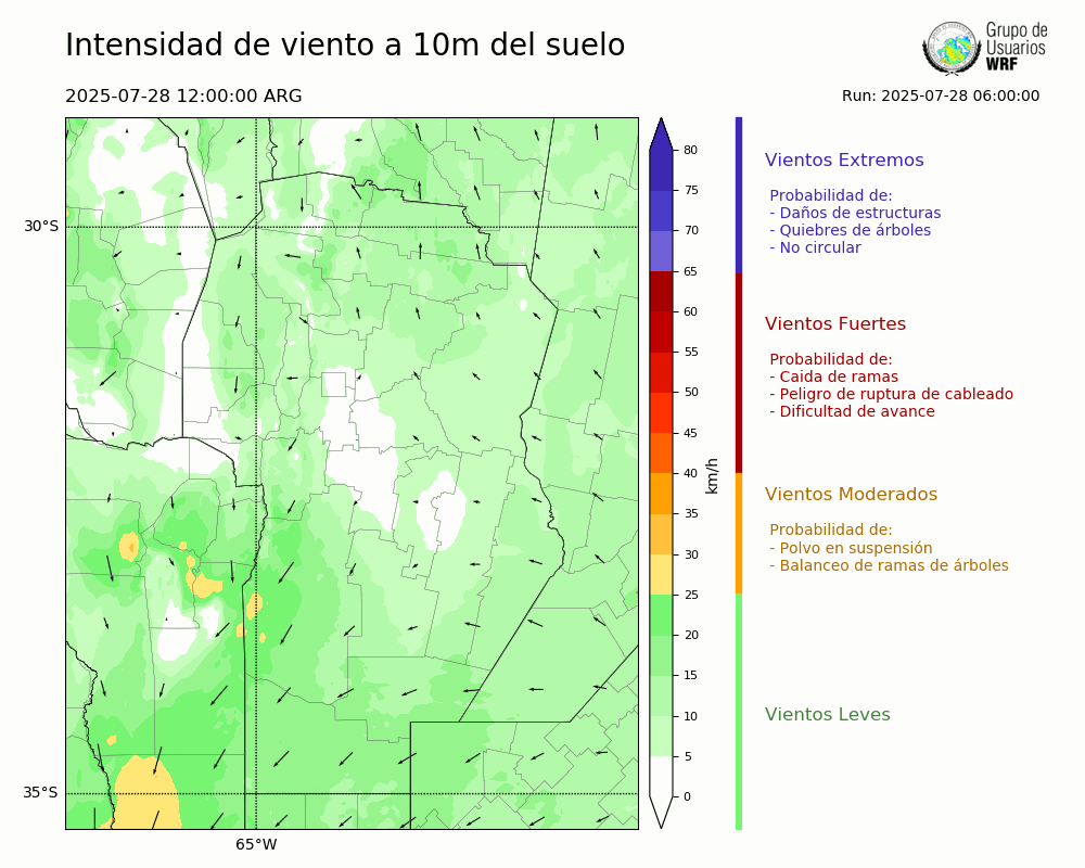 • Intensidad máxima: 12.69 km/h (28/07/2025 19hs.)
