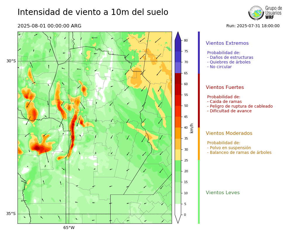 • Intensidad máxima: 3.93 km/h (01/08/2025 06hs.)