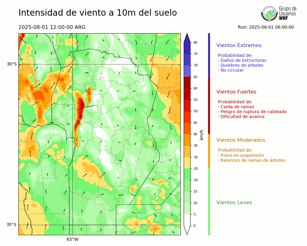 • Intensidad máxima: 20.15 km/h (01/08/2025 16hs.)