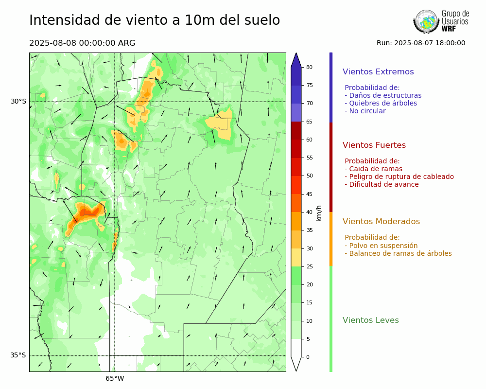 • Intensidad máxima: 4.69 km/h (09/08/2025 04hs.)