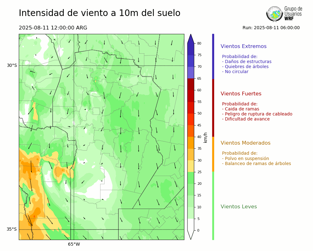 • Intensidad máxima: 18.46 km/h (11/08/2025 17hs.)