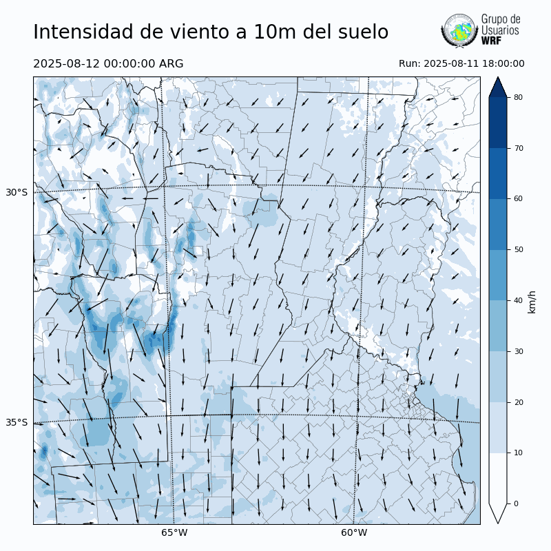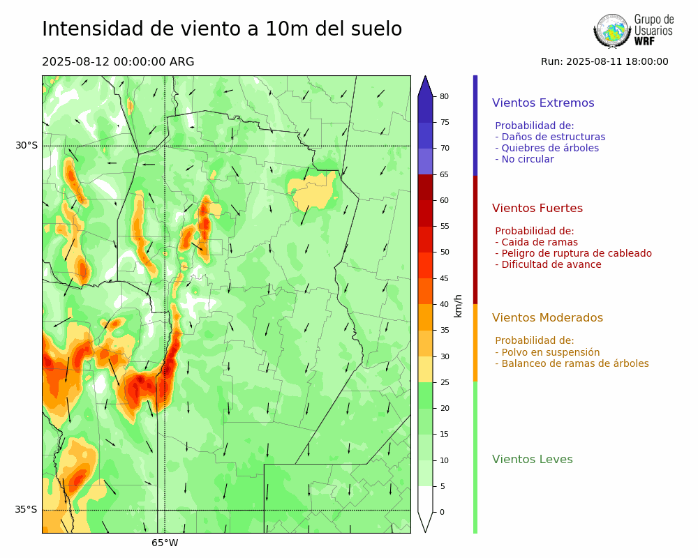 • Intensidad máxima: 9.27 km/h (12/08/2025 11hs.)