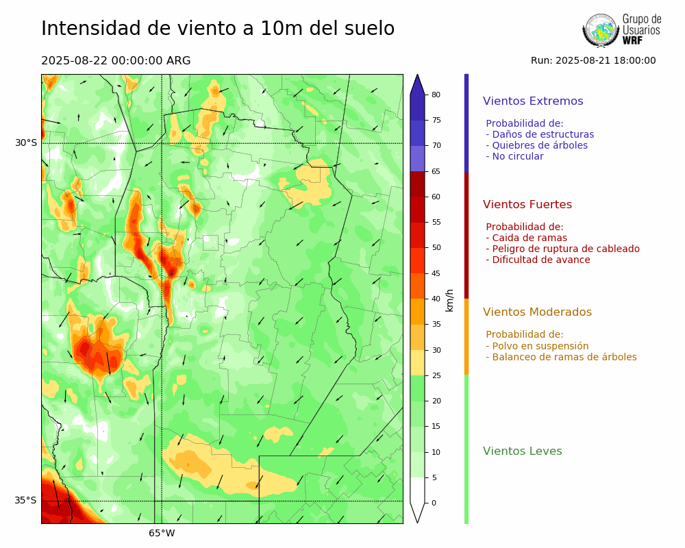 • Intensidad máxima: 35.39 km/h (22/08/2025 10hs.)