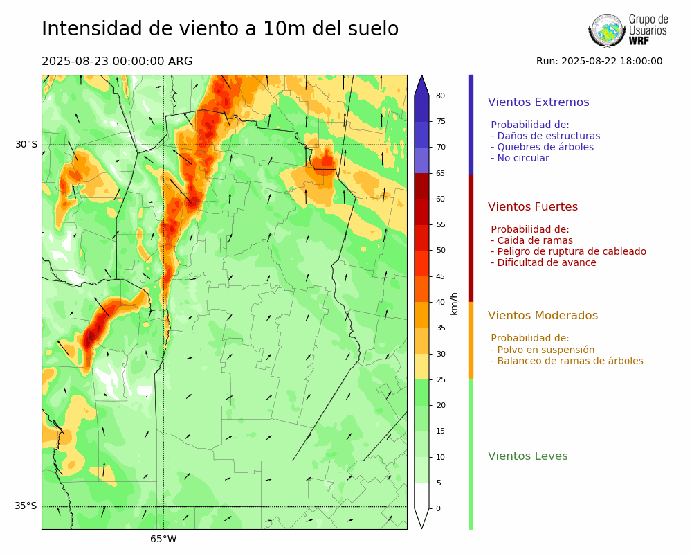 • Intensidad máxima: 14.97 km/h (23/08/2025 10hs.)
