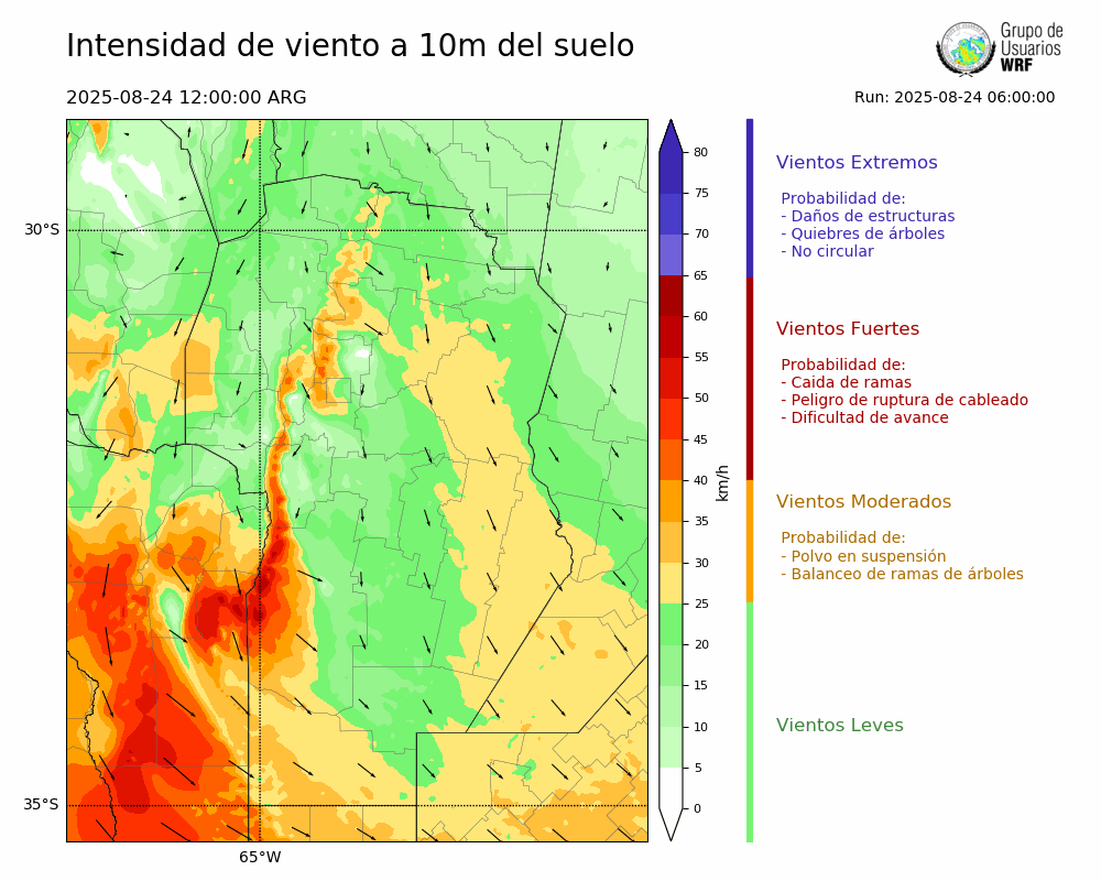 • Intensidad máxima: 26.53 km/h (24/08/2025 16hs.)
