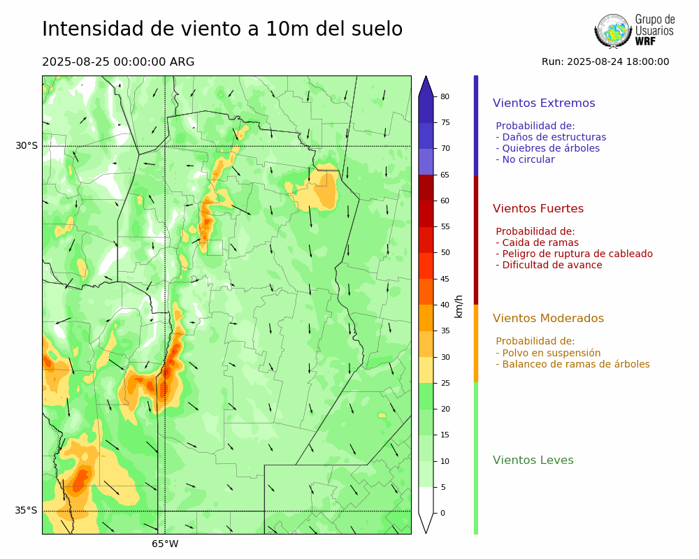 • Intensidad máxima: 16.89 km/h (25/08/2025 03hs.)