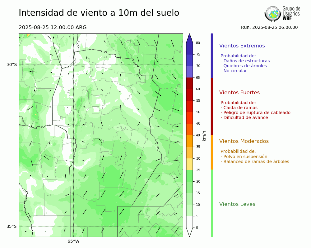 • Intensidad máxima: 6.48 km/h (26/08/2025 05hs.)