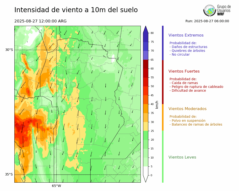 • Intensidad máxima: 19.93 km/h (27/08/2025 15hs.)