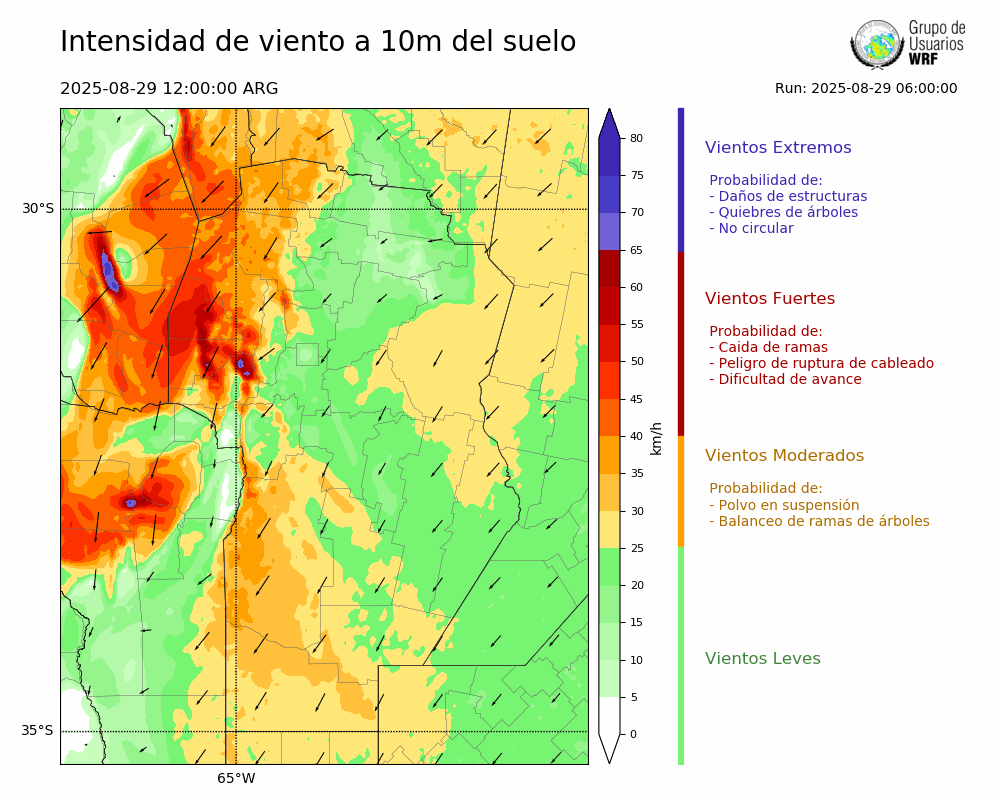 • Intensidad máxima: 19.68 km/h (29/08/2025 17hs.)