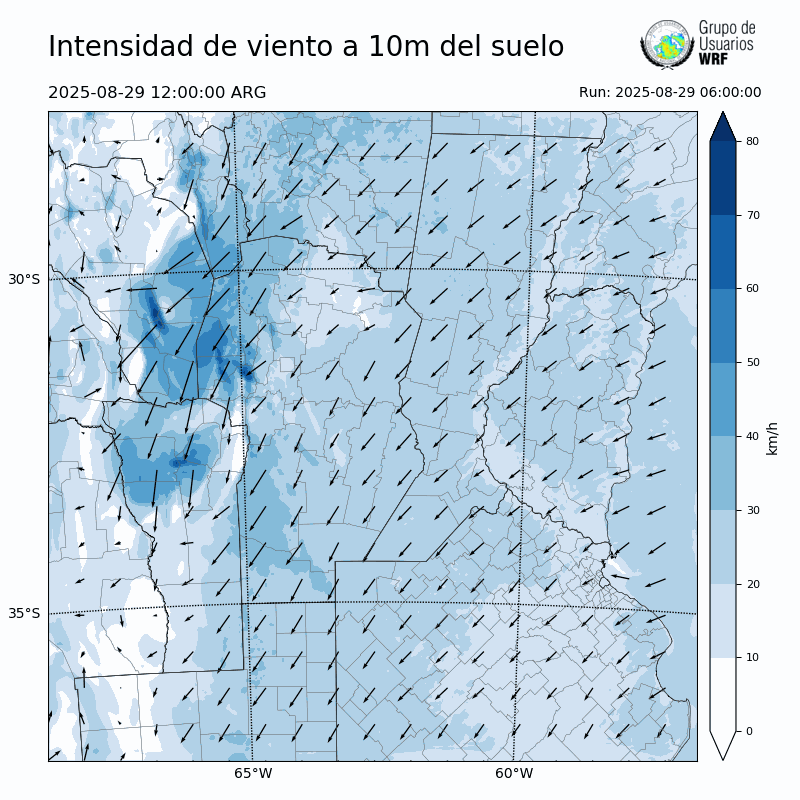 • Intensidad máxima: 12.36 km/h (30/08/2025 23hs.)