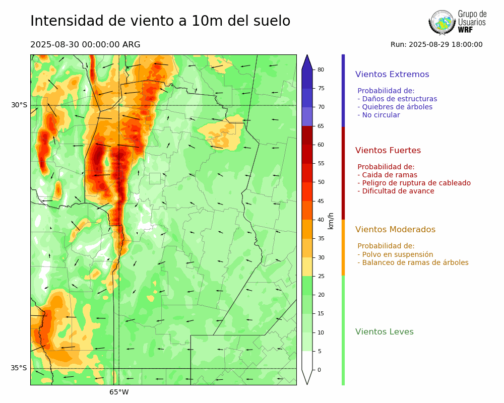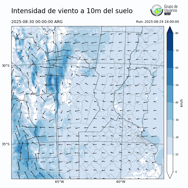 • Intensidad máxima: 12.32 km/h (30/08/2025 22hs.)