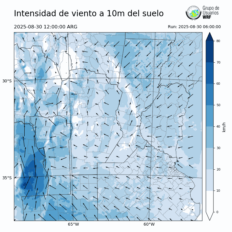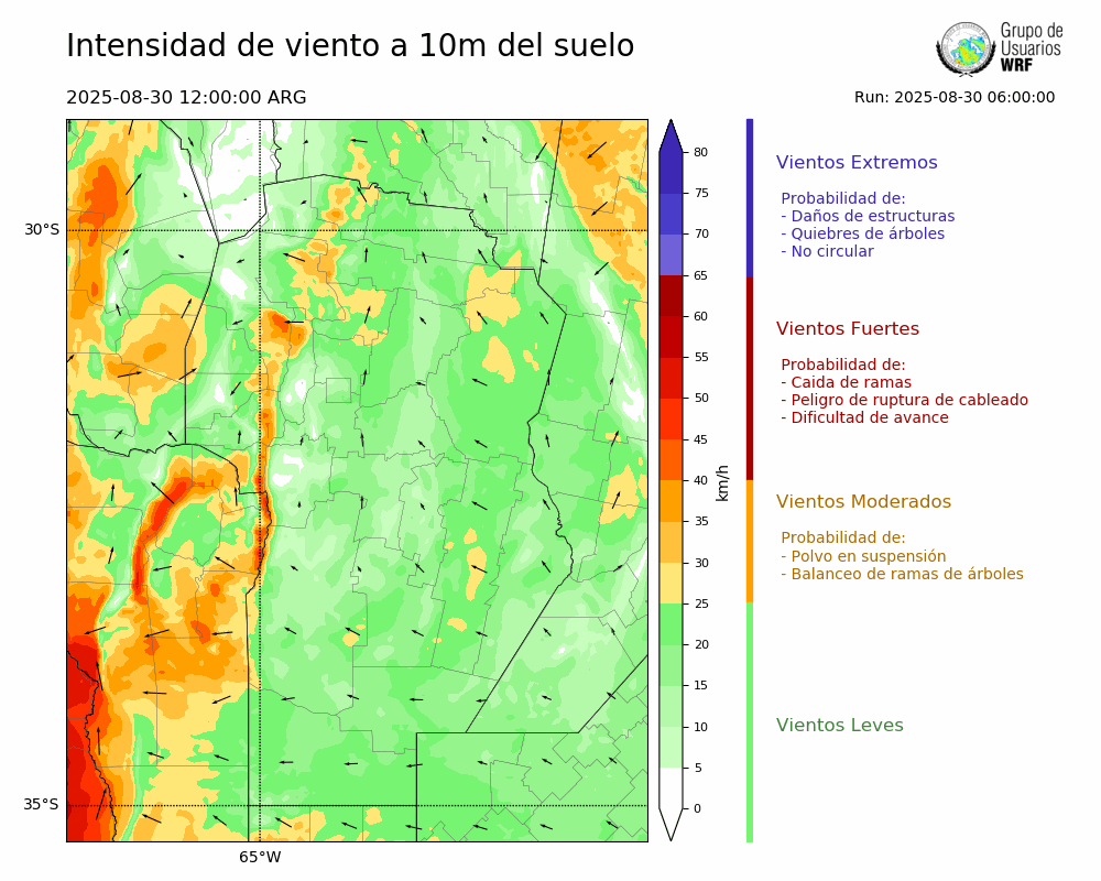• Intensidad máxima: 18.72 km/h (30/08/2025 19hs.)