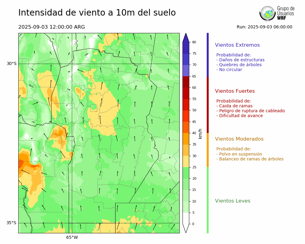 • Intensidad máxima: 14.63 km/h (03/09/2025 18hs.)