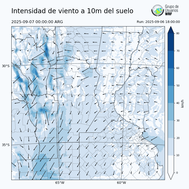 • Intensidad máxima: 6.00 km/h (09/09/2025 04hs.)