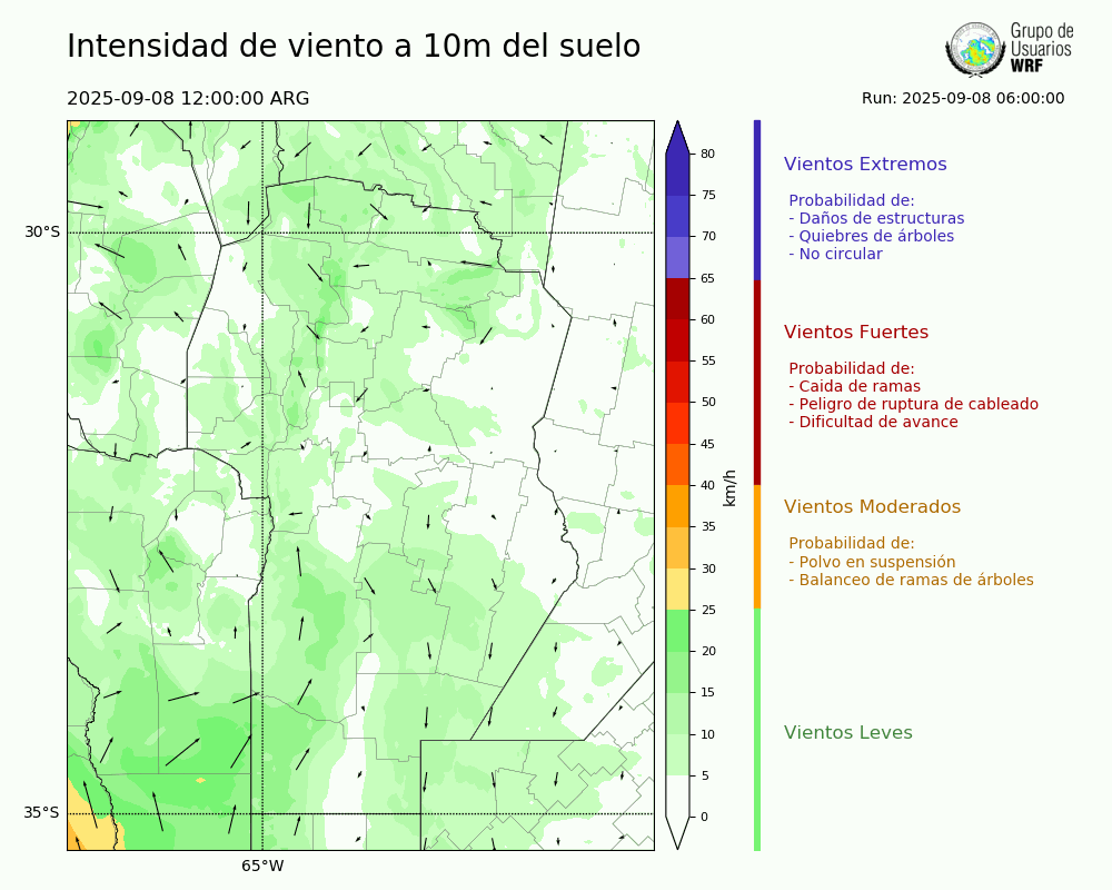 • Intensidad máxima: 14.33 km/h (08/09/2025 17hs.)