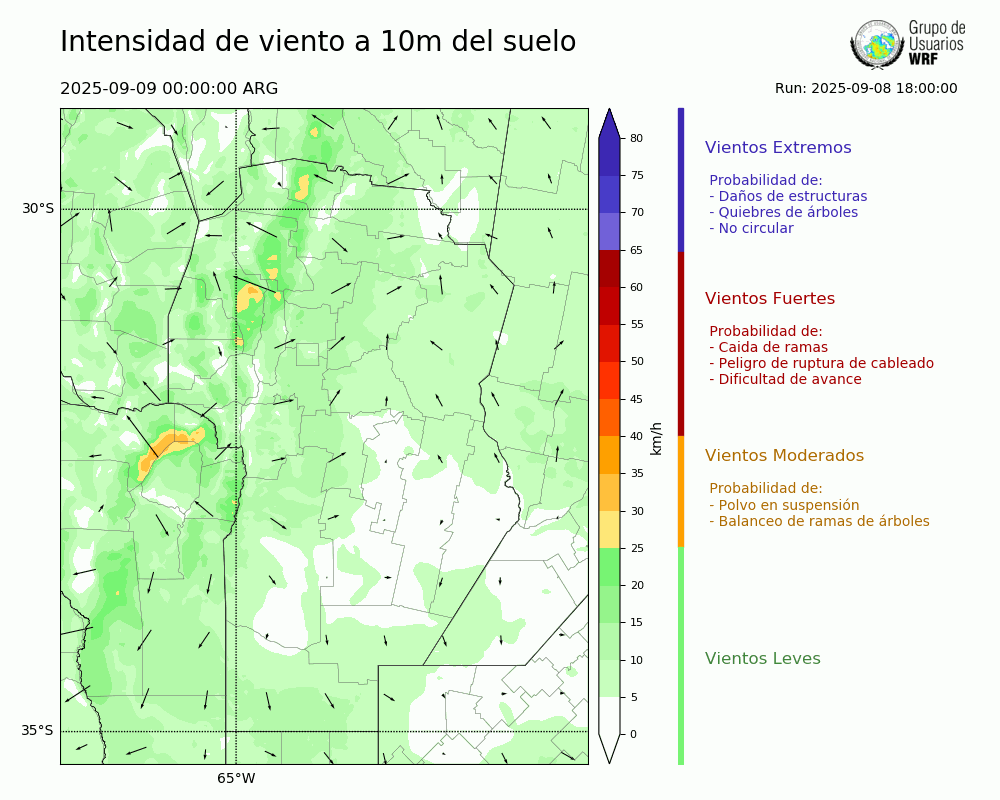 • Intensidad máxima: 13.51 km/h (09/09/2025 11hs.)