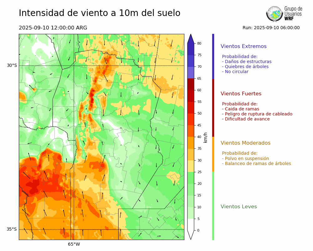 • Intensidad máxima: 4.79 km/h (12/09/2025 01hs.)