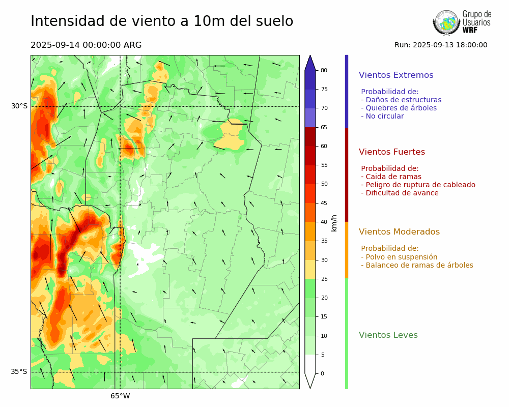 • Intensidad máxima: 13.15 km/h (14/09/2025 06hs.)