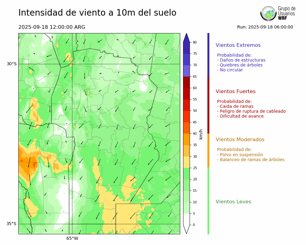 • Intensidad máxima: 16.08 km/h (18/09/2025 17hs.)