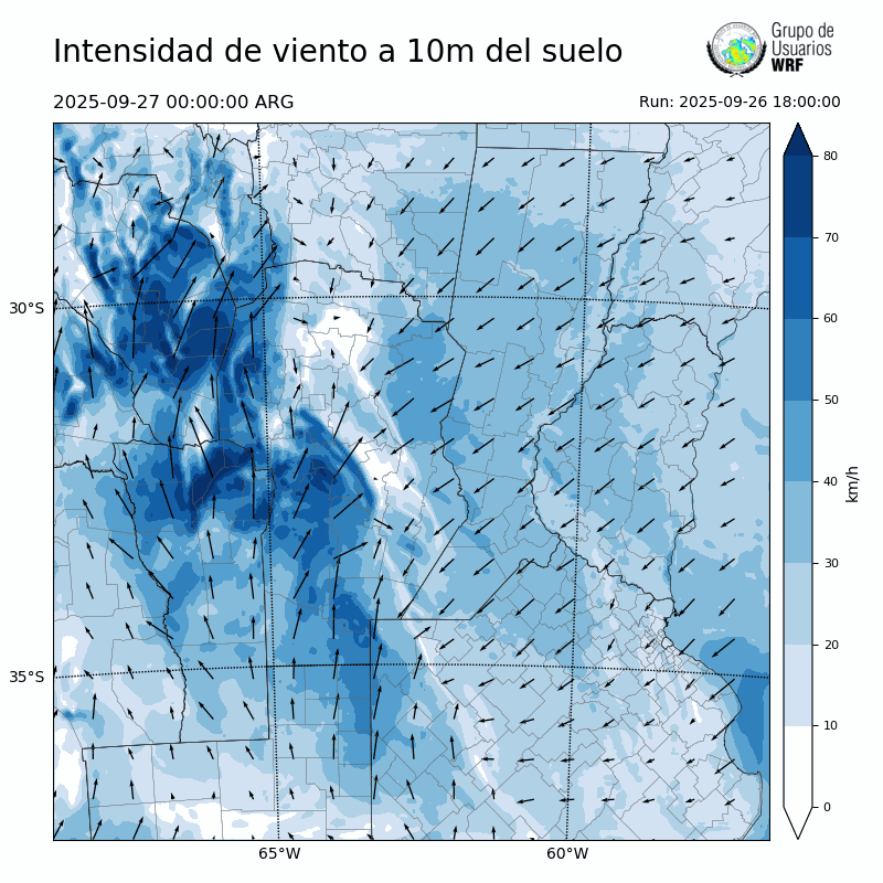 • Intensidad máxima: 40.00 km/h (27/09/2025 02hs.)