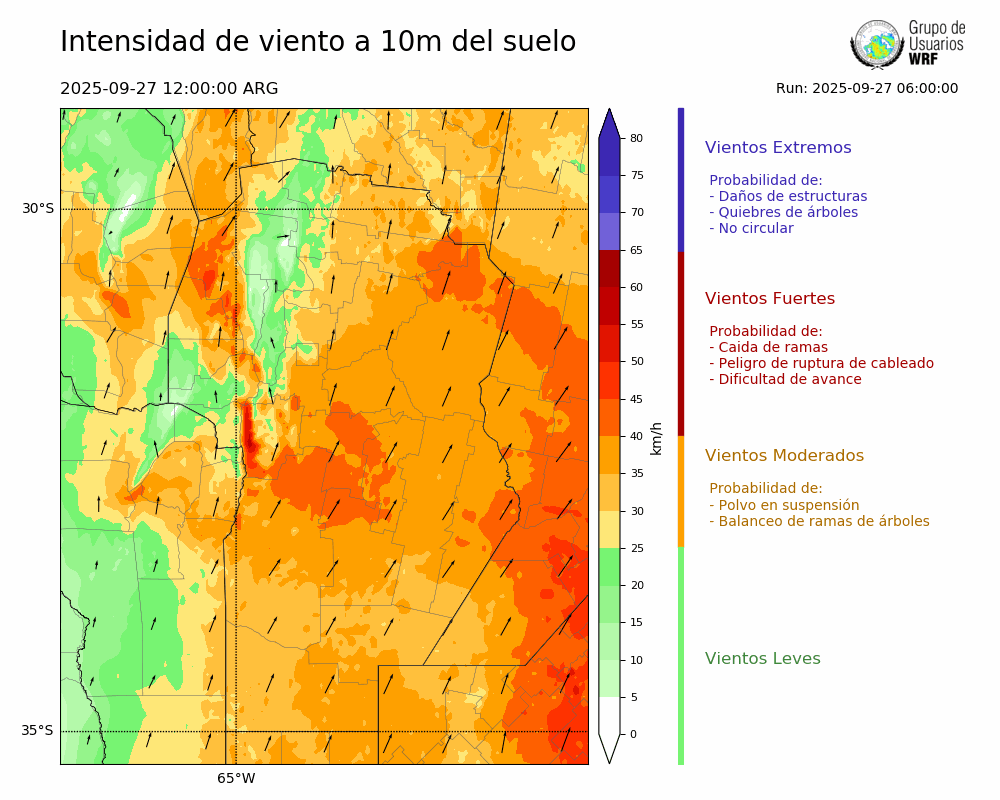 • Intensidad máxima: 25.64 km/h (27/09/2025 13hs.)
