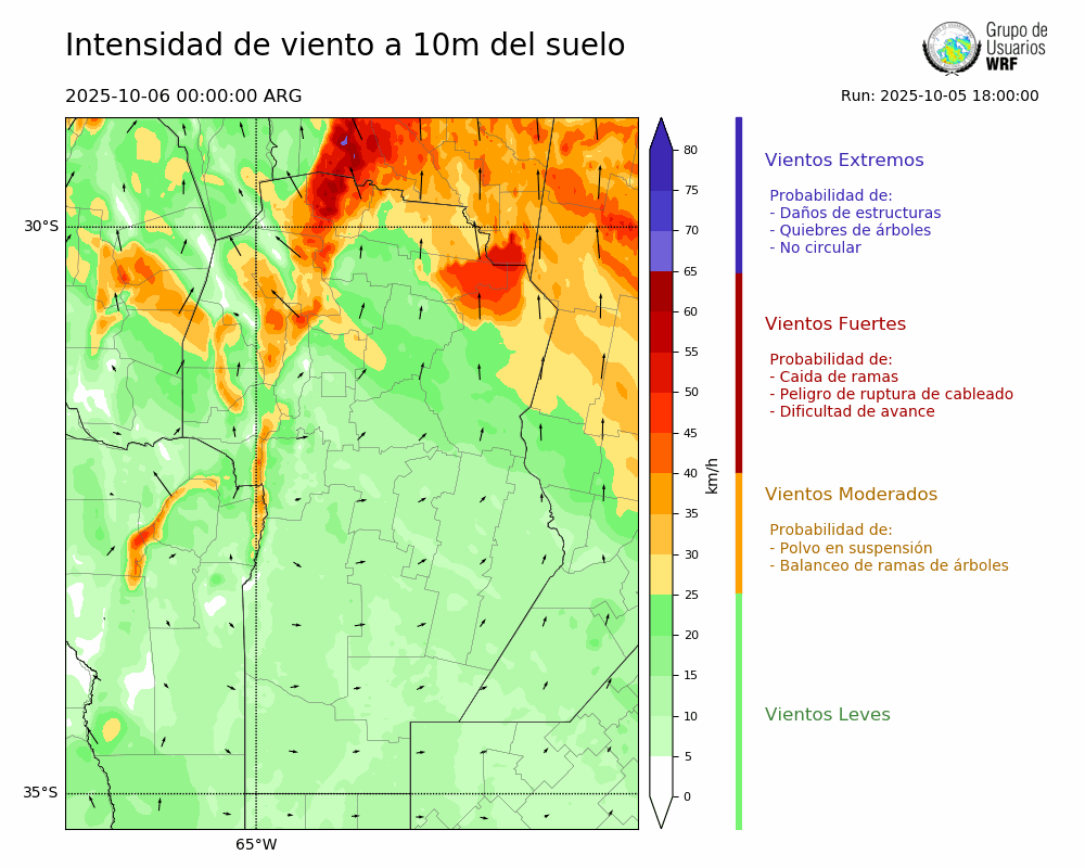 • Intensidad máxima: 11.98 km/h (06/10/2025 11hs.)