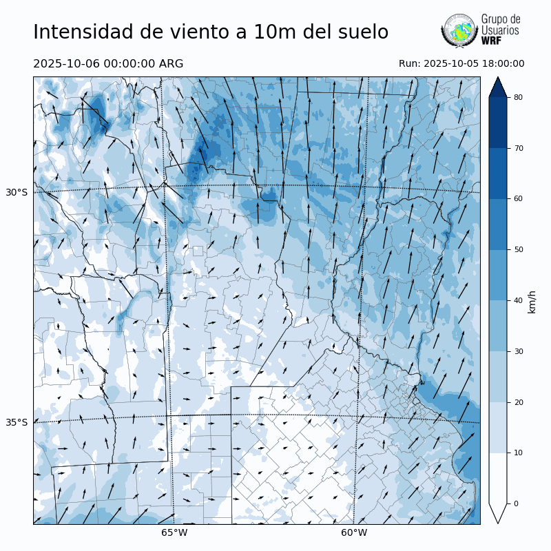 • Intensidad máxima: 5.52 km/h (08/10/2025 06hs.)