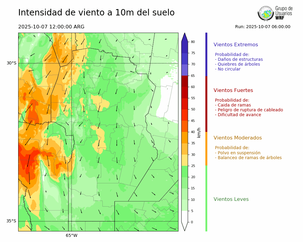 • Intensidad máxima: 7.07 km/h (09/10/2025 06hs.)