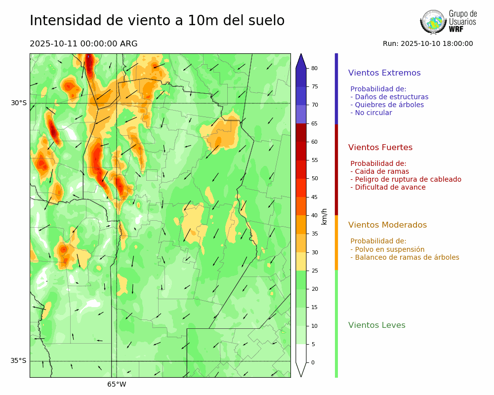 • Intensidad máxima: 12.36 km/h (11/10/2025 05hs.)