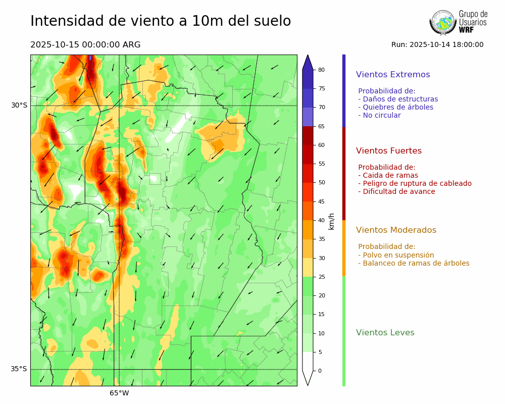• Intensidad máxima: 4.84 km/h (15/10/2025 05hs.)