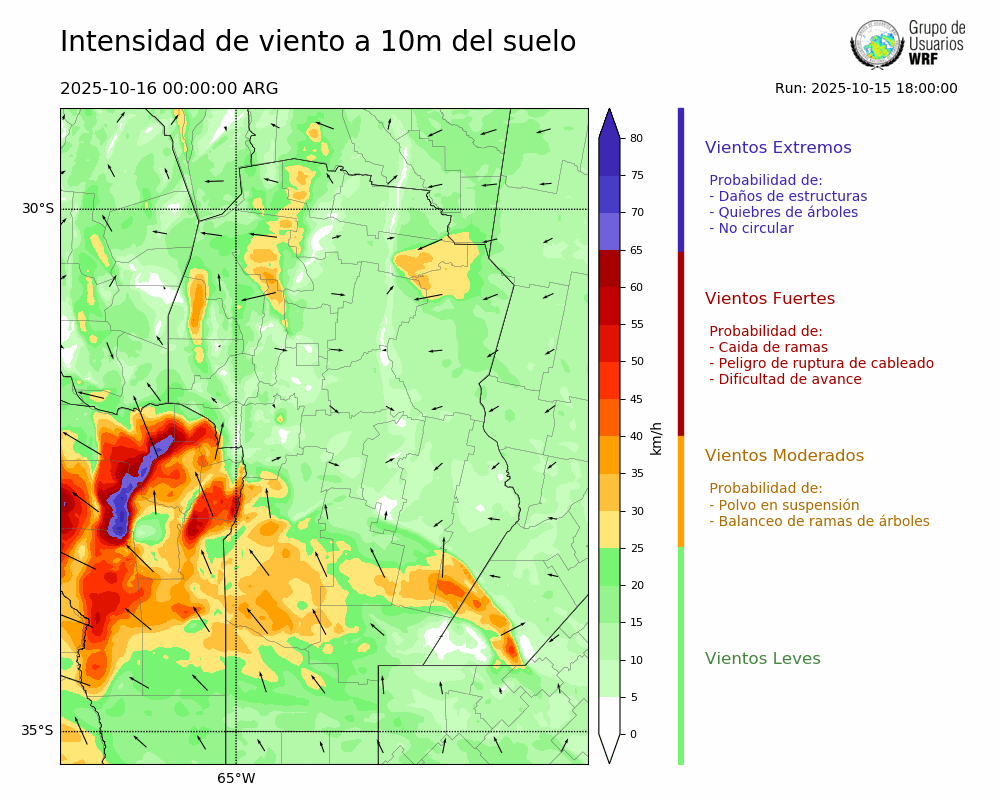 • Intensidad máxima: 23.60 km/h (16/10/2025 04hs.)