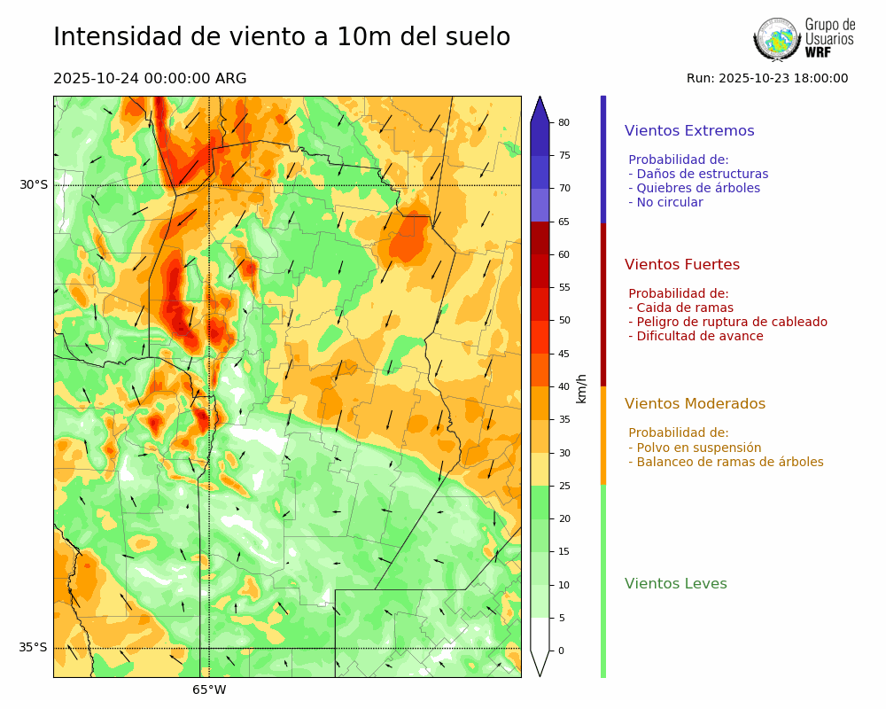 • Intensidad máxima: 21.61 km/h (24/10/2025 00hs.)