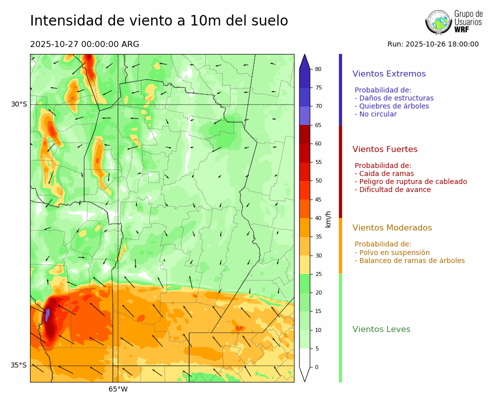 • Intensidad máxima: 4.78 km/h (27/10/2025 00hs.)