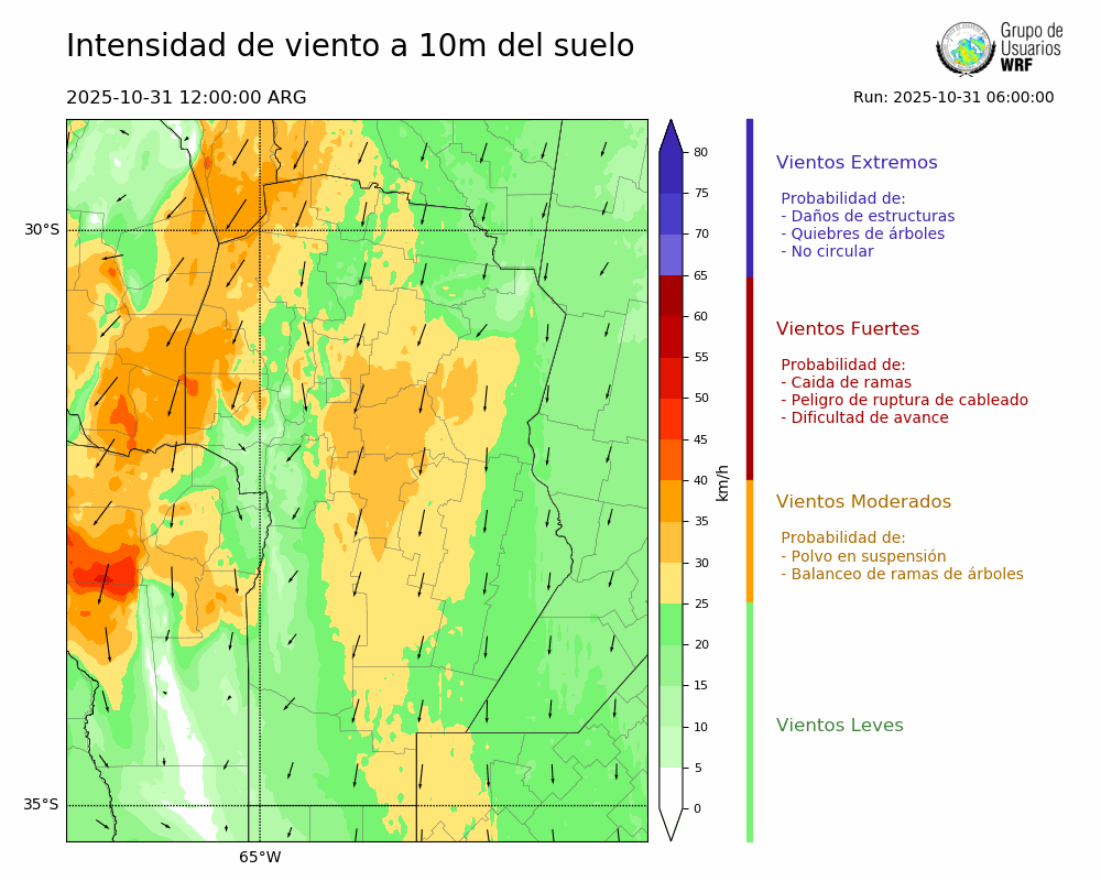 • Intensidad máxima: 25.48 km/h (31/10/2025 18hs.)