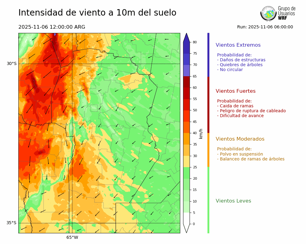 • Intensidad máxima: 16.70 km/h (06/11/2025 15hs.)