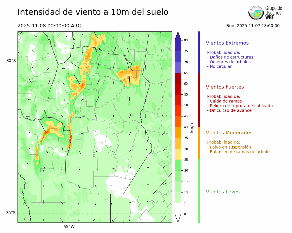 • Intensidad máxima: 11.87 km/h (08/11/2025 00hs.)