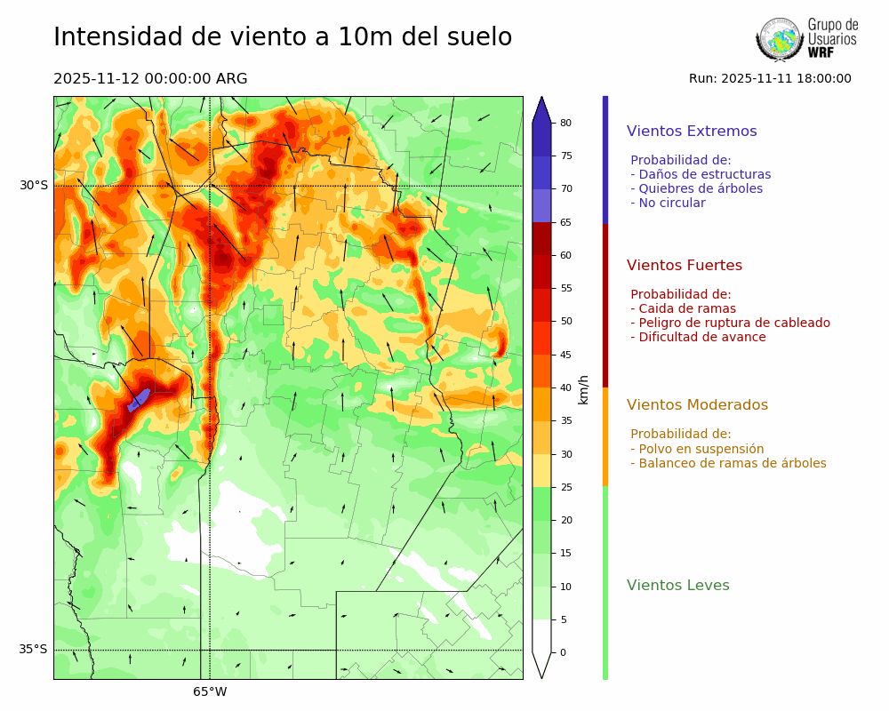 • Intensidad máxima: 18.18 km/h (12/11/2025 00hs.)