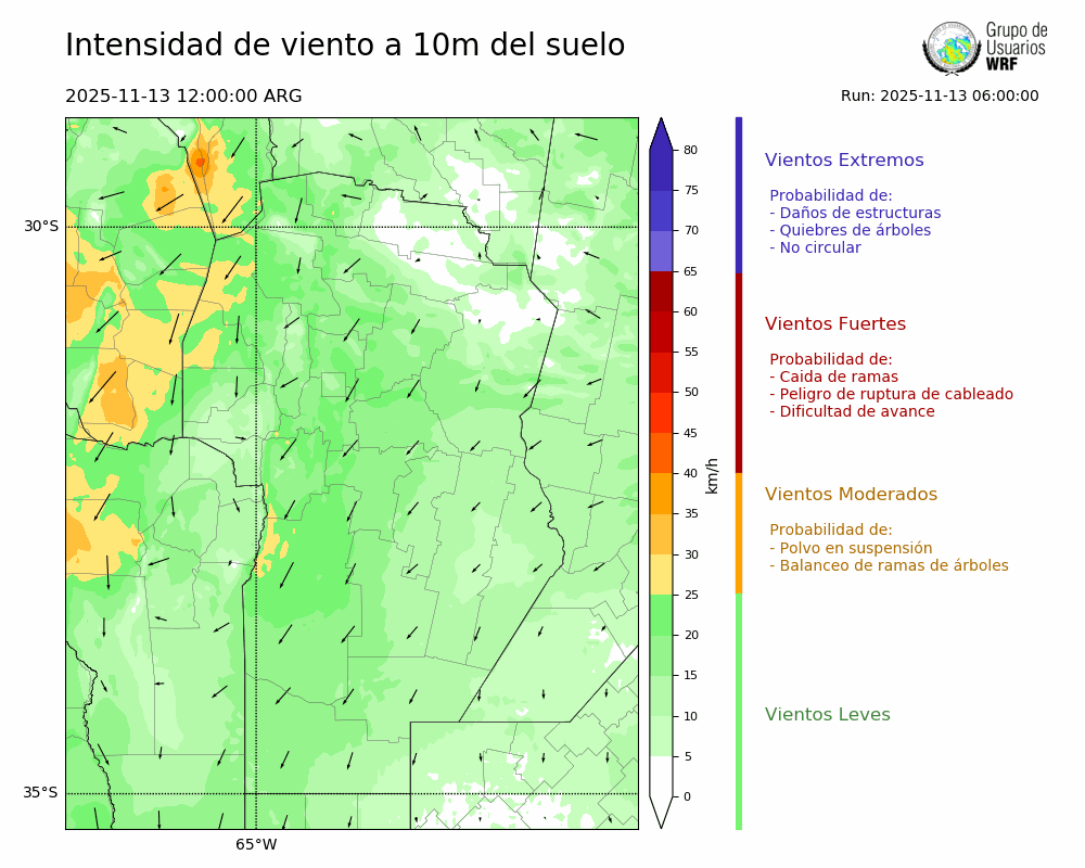 • Intensidad máxima: 20.95 km/h (13/11/2025 16hs.)